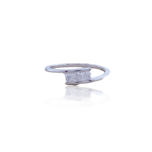 Introducing the "Trinity Sparkle" 18K White Gold Diamond Ring, a stunning embodiment of elegance and refined craftsmanship. This exquisite ring features a sleek white gold band that gracefully wraps around the finger. At the center of the ring, between both ends, are three dazzling diamond pieces, meticulously placed to create a captivating focal point. The diamonds radiate brilliance and sparkle, symbolizing the past, present, and future, making the "Trinity Sparkle" ring an exquisite representation of eternal love and commitment. Crafted with utmost precision and attention to detail, this ring is a true testament to the artistry of fine jewelry. Let the "Trinity Sparkle" adorn your finger, as it becomes a cherished symbol of your unique journey and the timeless beauty that lies within.