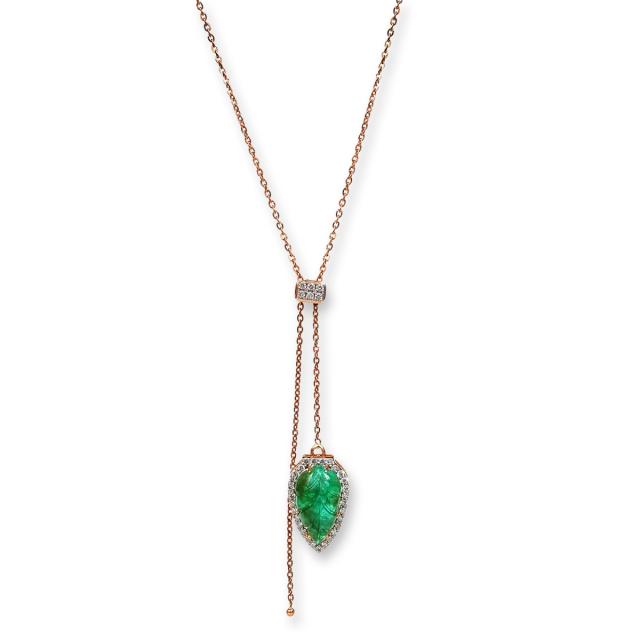 Color Stone type and Color | Leaf Shaped Natural Emerald with intricate carving |
