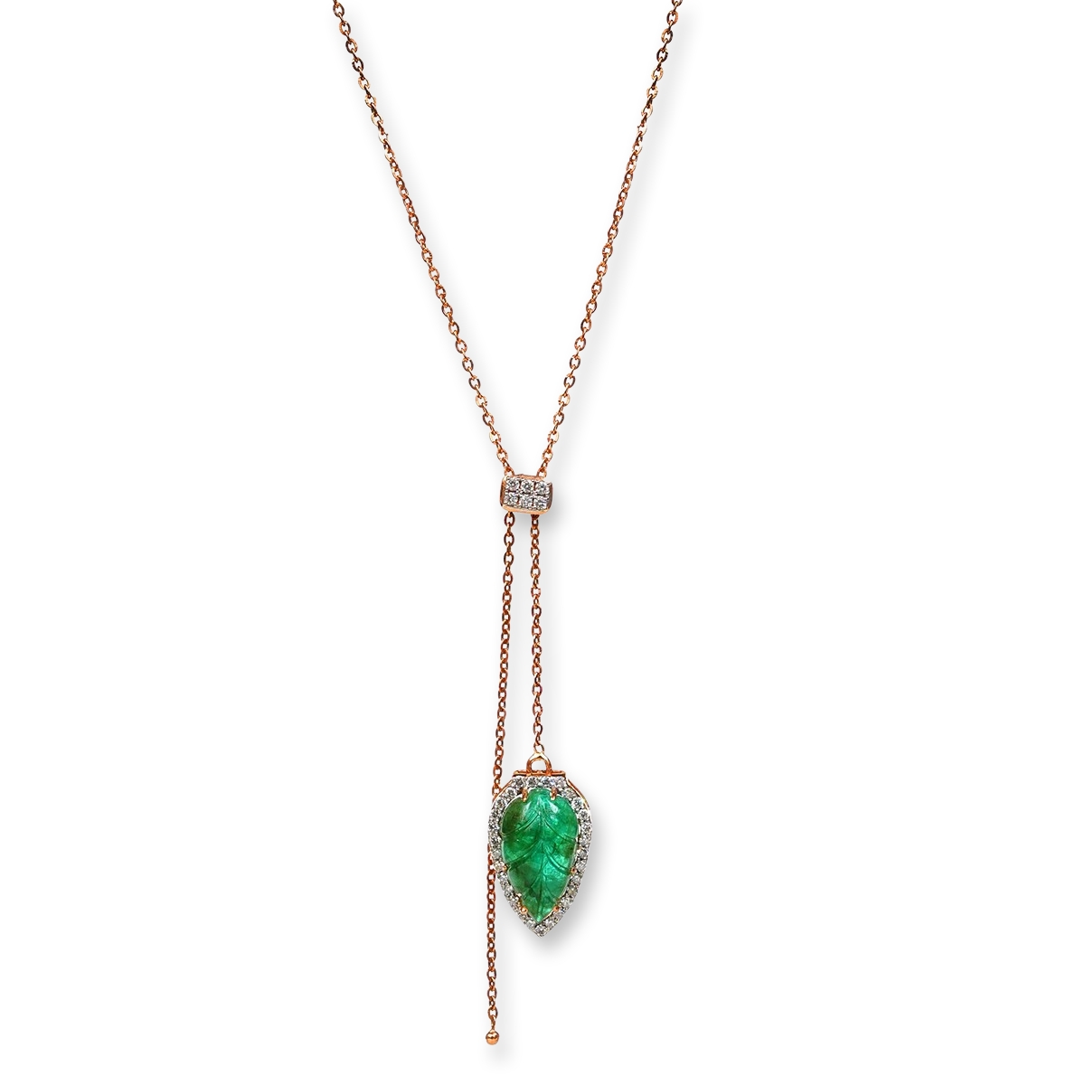 Embrace everyday elegance with our "Graceful Verdant Harmony" 18K Yellow Gold Pendant-Earrings Set. This Diamond and Gemstone Jewelry ensemble features a stunning leaf-shaped carved emerald, surrounded by natural round brilliant cut diamonds of VVS clarity and EF color. Meticulously crafted, the intricate carving adds a touch of nature's grace to this exquisite set, making it a perfect choice for daily wear.