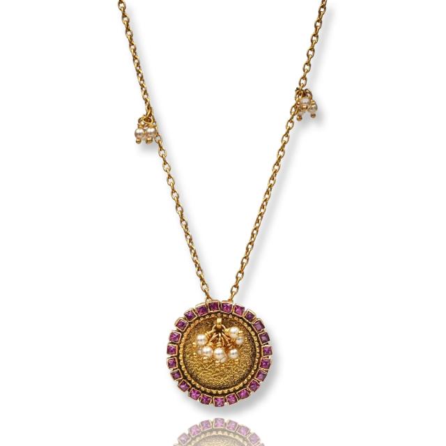 Sukshma Regalia: Handmade 22k Gold Jumkhi-Bandhai Pendant-Earrings Set